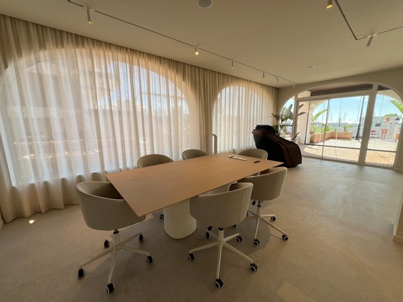 El espacio ha sido diseñado con un estilo moderno y funcional, combinando materiales de calidad y una distribución optimizada que favorece la comodidad y la productividad, con aseo y cocina. La abundante luz natural, junto con el sonido y la presencia del mar, crean una atmósfera inspiradora y profesional.